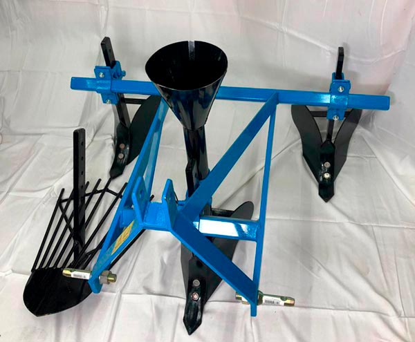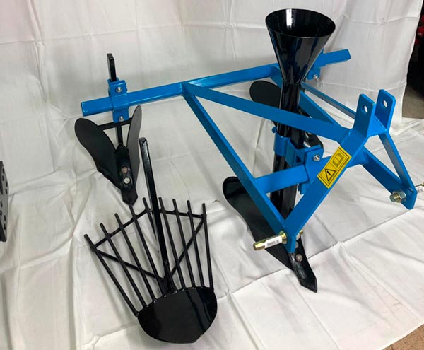 Asurcador / apocador + Sacapatatas + Sembradora Características: Arrancador de patatas con vibración a toma.Fuerza tractor.Para tractores de baja y media potencia.